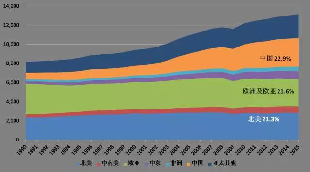 我國(guó)一次能源消費(fèi)占全球能源消費(fèi)的22.9%。2015年,全球能耗是1990年的1.6倍,而中國(guó)已經(jīng)是1990年的4.4倍。2015年一次能源對(duì)外依存度15.8%,其中原油61.7%,天然氣30.1%,煤炭4.9%。