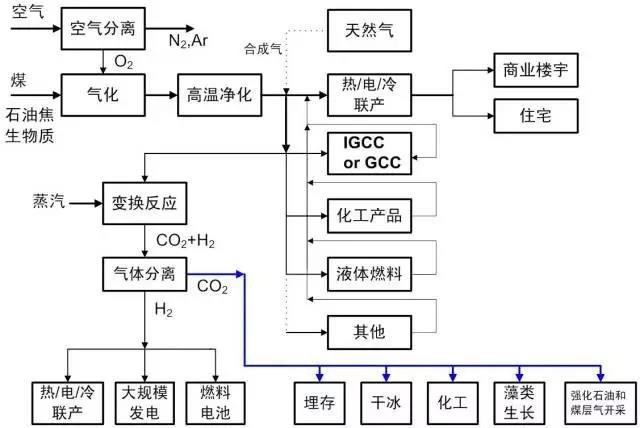 煤氣化系統(tǒng)可以以較小的成本捕捉CO2。在煤的清潔高效利用方面電化共軌有很大潛力,是煤炭發(fā)展的重要方向。