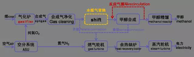 煤基多聯(lián)產(chǎn)是指利用從單一的設(shè)備(氣化爐)中產(chǎn)生的"合成氣"(主要成分為CO+H2),來(lái)進(jìn)行跨行業(yè)、跨部門的生產(chǎn),以得到多種具有高附加值的化工產(chǎn)品、液體燃料(甲醇、F-T合成燃料、二甲醇、城市煤氣、氫氣)、以及用于工藝過(guò)程的熱和進(jìn)行發(fā)電等。