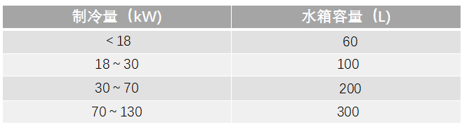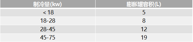 I. 一般系統(tǒng)總水容量為(按主機制冷量6-10L/KW),同時使用臺數(shù)低時選大值,空調(diào)+地暖系統(tǒng)單獨使用時必須校核單個系統(tǒng)的水容量;